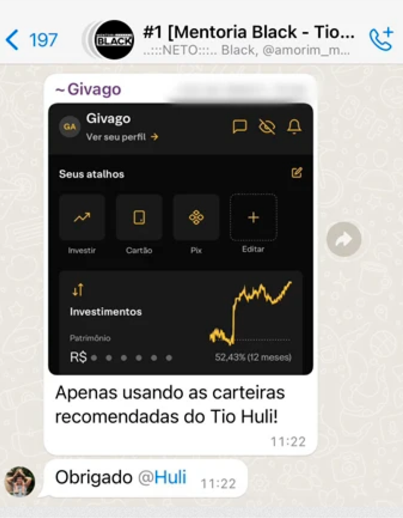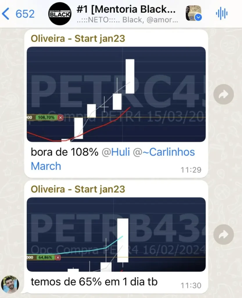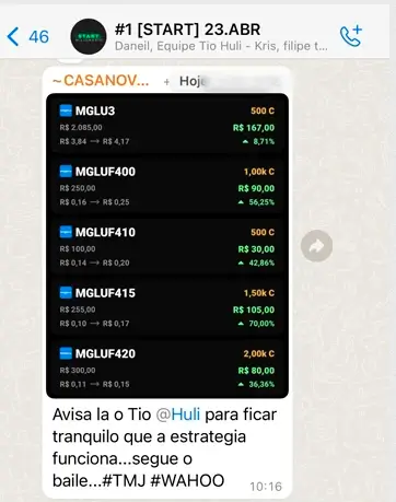 Sem falar dos alunos que estavam AO VIVO e só com essa entrega recuperaram no primeiro mês o valor da mentoria lucrando com as opções.